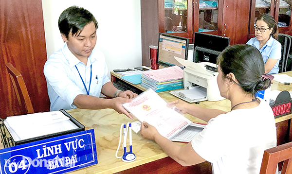 | Người dân đến làm các thủ tục về đất đai tại Bộ phận tiếp nhận và trả kết quả UBND TP.Long Khánh. Ảnh tư liệu |