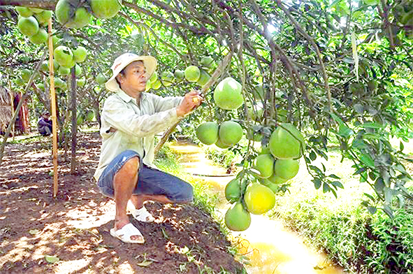 | Nhiều địa phương chuyển đổi từ vườn tạp sang trồng bưởi cho thu nhập cao. Ảnh chụp tại vườn bưởi của nông dân xã Bình Lợi, H.Vĩnh Cửu. (Ảnh: Bình Nguyên) |
