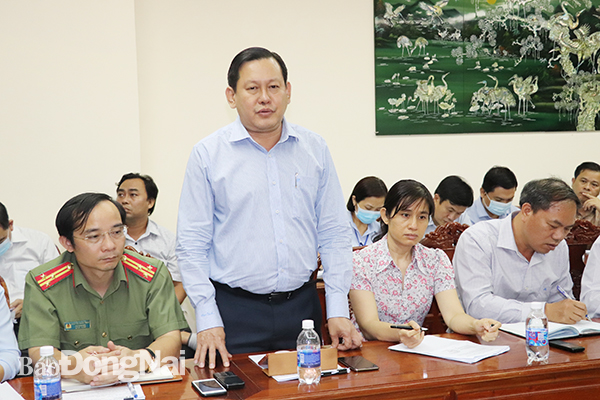 | Giám đốc Sở TN-MT Đặng Minh Đức phát biểu ý kiến tại cuộc họp. |