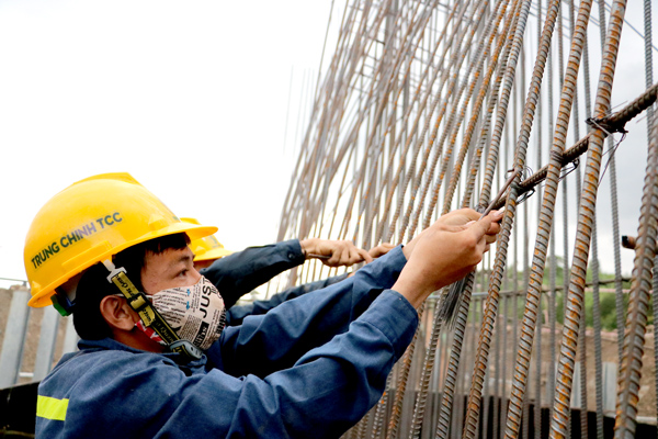 | Một số dự án giao thông hiện gặp khó khăn trong thi công vì chưa thể di dời hệ thống hạ tầng kỹ thuật. Trong ảnh: Công nhân thi công đường cao tốc Phan Thiết - Dầu Giây |