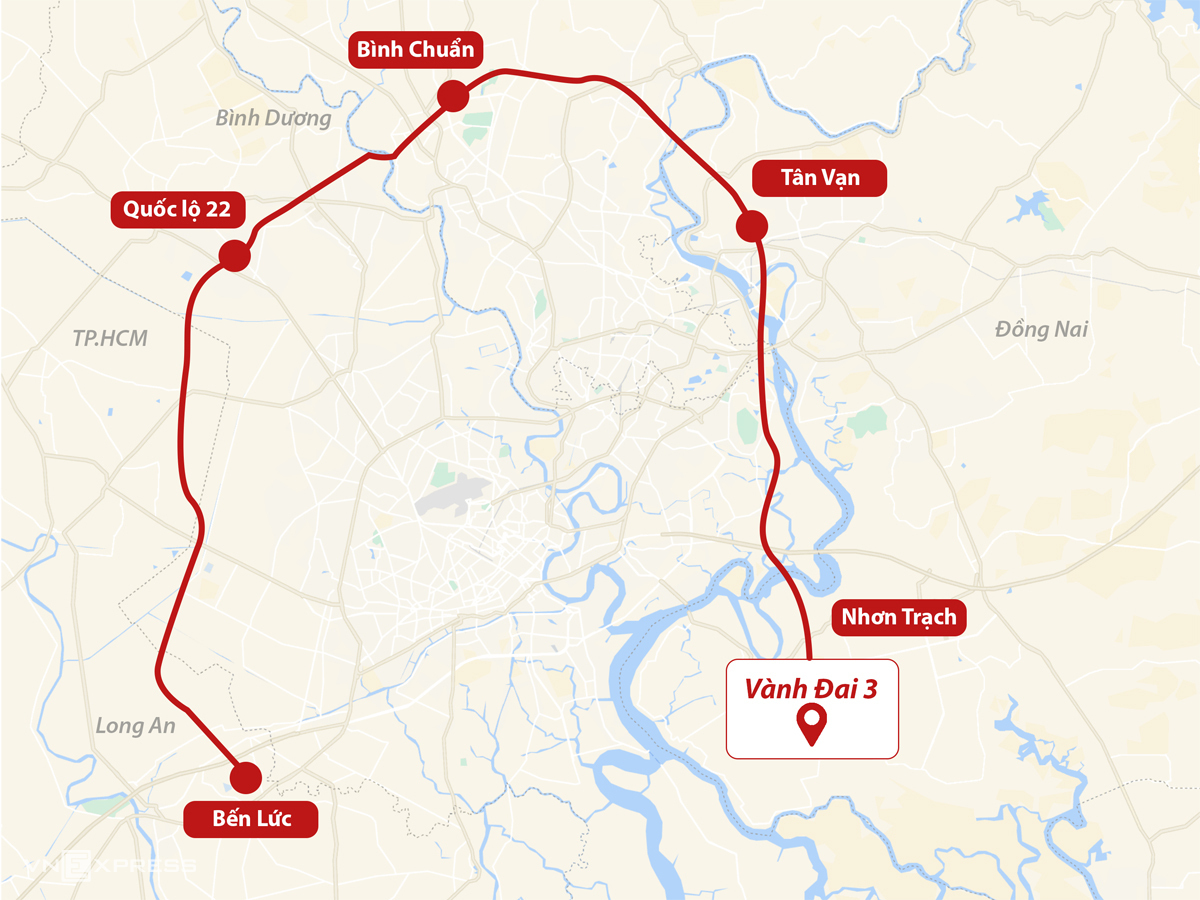 Dự án Vành đai 3 do UBND TP.HCM là cơ quan chuẩn bị dự án (lập Báo cáo nghiên cứu tiền khả thi dự án). Dự án có chiều dài 76,34 km, đầu tư 4 làn xe cao tốc hạn chế; đường song hành mỗi bên từ 2 – 3 làn xe; phân chia thành 8 dự án thành phần và giao các địa phương gồm TP.HCM, Đồng Nai, Bình Dương, Long An thực hiện.