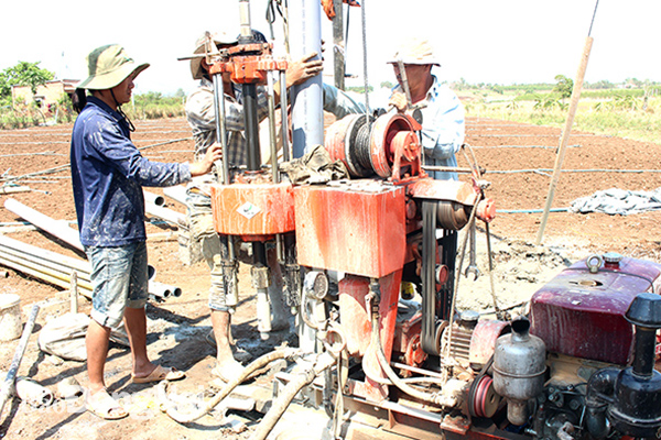 | Người dân H.Cẩm Mỹ khoan giếng lấy nước cho sản xuất nông nghiệp. Ảnh: H.LỘC |