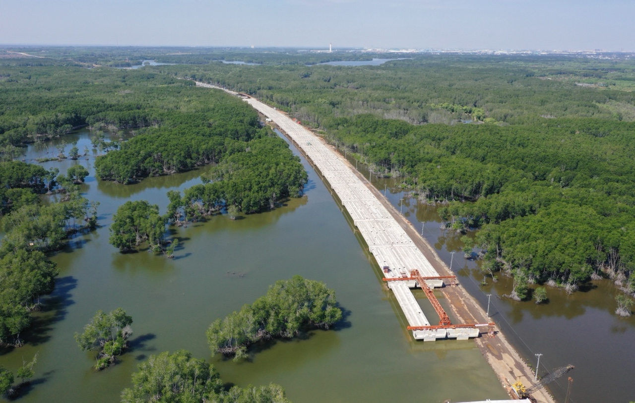 Đường cao tốc Bến Lức- Long Thành, một trong 3 tuyến đường cao tốc kết nối với sân bay Long Thành hiện đang được thi công.