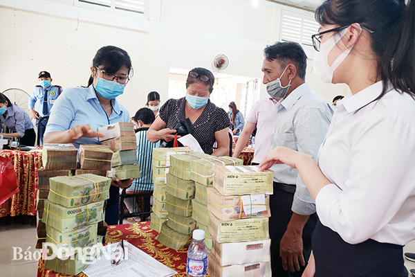 | Chi trả tiền đền bù, hỗ trợ cho người dân vùng dự án Sân bay Long Thành. Ảnh: Q.Nhi |