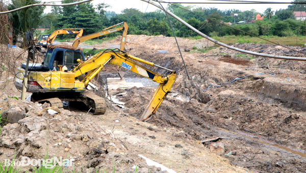 | Dự án Hệ thống thoát nước khu vực suối Nước Trong (H.Long Thành) là một trong những dự án bị chậm tiến độ do vướng mắc trong công tác giải phóng mặt bằng. Ảnh: P.Tùng |