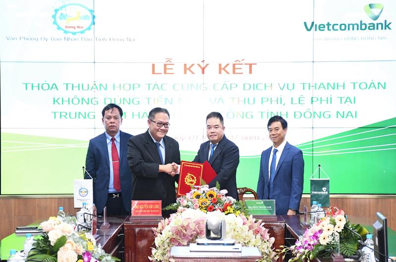 Sáng ngày 1-7, Văn phòng UBND tỉnh và Ngân hàng TMCP Ngoại thương Việt Nam (Vietcombank) chi nhánh Đông Đồng Nai đã ký kết thoả thuận hợp tác cung cấp dịch vụ thanh toán không dùng tiền mặt và thu phí, lệ phí tại Trung tâm Hành chính công tỉnh. Đến dự buổi lễ có Phó chủ tịch UBND tỉnh Võ Tấn Đức.