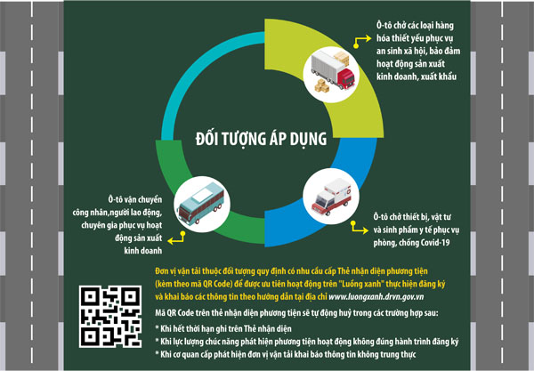 Theo đánh giá của các cơ quan chức năng, “luồng xanh” ưu tiên cho xe qua các chốt kiểm soát giao thông nhưng không có nghĩa là buông lỏng công tác phòng, chống dịch Covid-19. Bởi hiện nay, ngành GT-VT chỉ mới cấp giấy nhận diện cho phương tiện, còn lái xe và người trên xe thì chưa. Do đó, người trên xe phải chấp hành nghiêm các quy định của Bộ Y tế như: có giấy xét nghiệm âm tính với SARS-CoV-2, hạn chế tiếp xúc trong khâu giao, nhận hàng hóa…