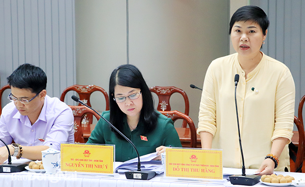 | Chủ tịch HĐQT Tổng công ty Sonadezi Đỗ Thị Thu Hằng nêu ý kiến tại buổi giám sát |