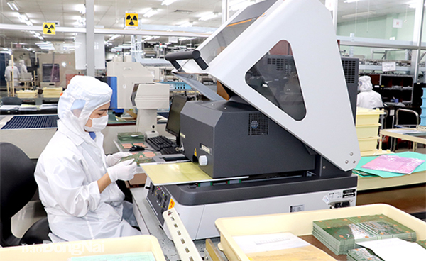 | Sản xuất linh kiện điện tử xuất khẩu tại Công ty TNHH FICT Việt Nam ở Khu công nghiệp Biên Hòa 2. Ảnh: H.Giang |
