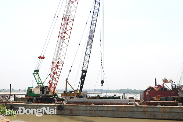 | Phát triển hệ thống kết cấu hạ tầng giao thông là một trong những bước đột phá nhằm tạo động lực phát triển cho các đô thị. Trong ảnh: Thi công dự án Xây dựng cầu Vàm Cái Sứt, TP.Biên Hòa |