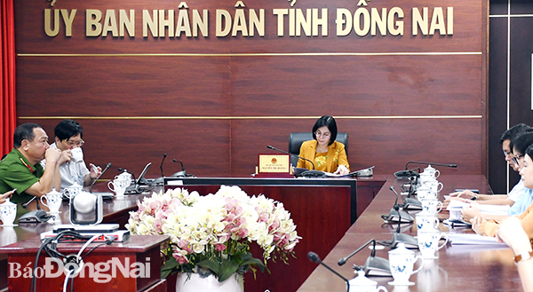 | Phó chủ tịch UBND tỉnh Nguyễn Thị Hoàng cùng đại diện các sở, ngành dự tại điểm cầu Đồng Nai |
