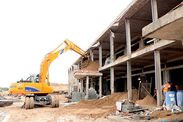 | Tiến độ thi công các công trình hạ tầng xã hội tại khu tái định cư Lộc An - Bình Sơn đang bị ảnh hưởng lớn do dịch bệnh Covid-19. Ảnh: P.TÙNG |
