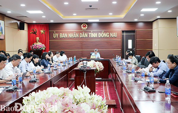 | Chủ tịch UBND tỉnh Cao Tiến Dũng đến dự và chủ trì hội nghị tại điểm cầu Đồng Nai |