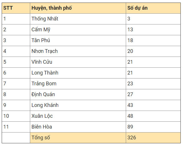 Các dự án bị hủy bỏ kế hoạch sử dụng đất tập trung lĩnh vực hạ tầng kỹ thuật, khu dân cư, thương mại dịch vụ. Riêng đất ở TP.Biên Hòa hủy kế hoạch sử dụng đất của 44 dự án với diện tích hơn 417ha. Lĩnh vực hạ tầng kỹ thuật có 21 dự án diện tích gần 49ha. Một số dự án bị hủy kế hoạch sử dụng đất có diện tích lớn là: Khu đô thị sinh thái Phước Tân ở P.Phước Tân rộng 56ha; Khu dân cư Tân Cang thuộc địa bàn P.Phước Tân khoảng 46ha; Khu dân cư tạo vốn 13 gần đường ven sông Cái hơn 68ha.