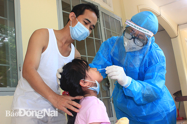 | Trẻ em cùng cha, mẹ cách ly tập trung phòng dịch tại TP.Long Khánh được lấy mẫu xét nghiệm định kỳ theo quy định. |