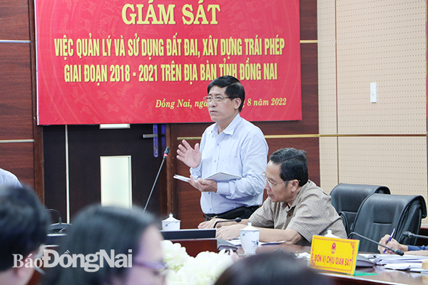 Ngày 30-8, Đoàn giám sát của Đoàn đại biểu quốc hội (ĐBQH) tỉnh do Phó bí thư Tỉnh ủy, Trưởng đoàn ĐBQH tỉnh Quản Minh Cường làm trưởng đoàn đã thực hiện giám sát về việc quản lý và sử dụng đất đai, xây dựng trái phép giai đoạn 2018-2021 trên địa bàn tỉnh đối với UBND tỉnh.