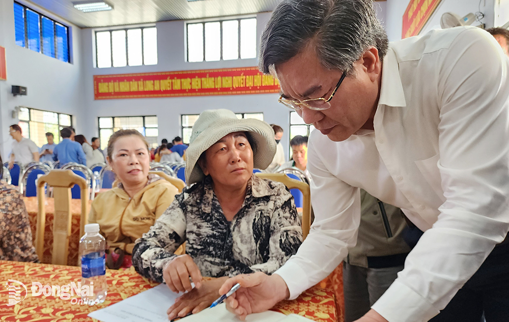 | Bí thư Huyện ủy Long Thành Dương Minh Dũng tiếp nhận ý kiến người dân trong dự án T01, T02 |