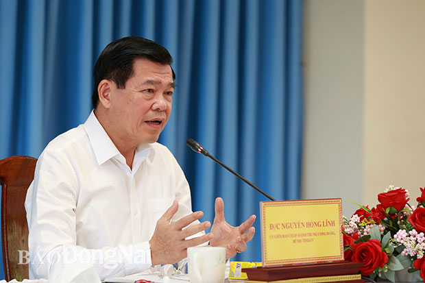 | Đồng chí Nguyễn Hồng Lĩnh, Bí thư Tỉnh ủy kết luận cuộc họp. Ảnh: Huy Anh |
