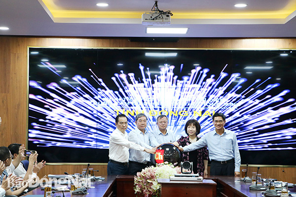 | Lãnh đạo UBND tỉnh cùng lãnh đạo Công ty CP Tiến bộ quốc tế AIC thực hiện nghi thức khai trương, vận hành thí điểm Trung tâm Điều hành đô thị thông minh vào tháng 1-2020. Ảnh:Q. Nhi |