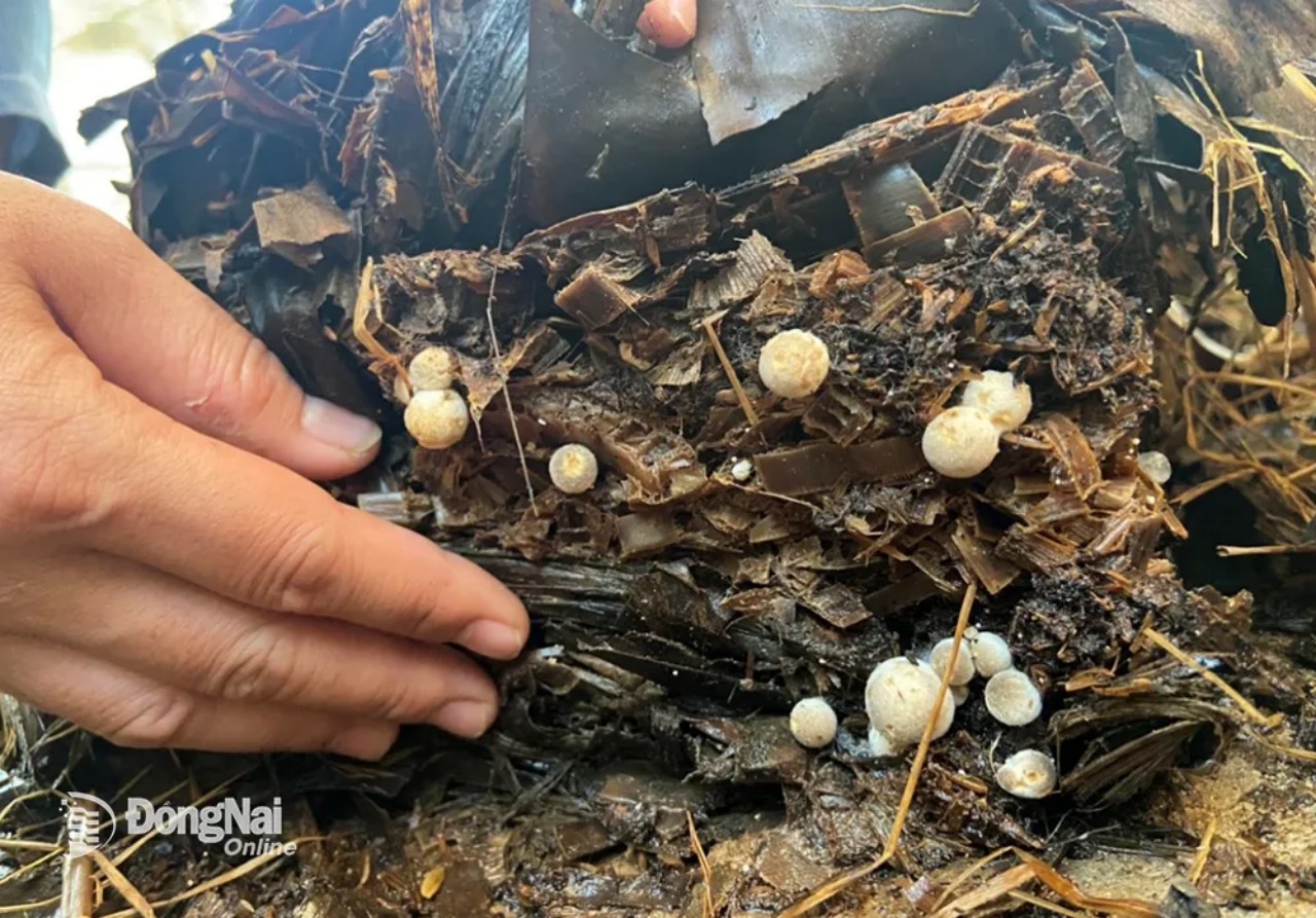 “Một lần lướt mạng xã hội, tôi đã thấy mô hình Nuôi trồng nấm rơm trên lá chuối nhưng chưa có ai nghiên cứu ra việc nhân giống cả. Từ đó, tôi và những người bạn có chung đam mê về nấm cùng nhau bàn bạc, thảo luận và quyết định nghiên cứu mô hình trồng nấm mới tại Đồng Nai. Nhóm đã đặt tên mô hình Nhân giống và nuôi trồng nấm rơm trên thân, lá chuối và chính thức triển khai thực hiện vào tháng 6-2023” - chị Mỵ kể lại.