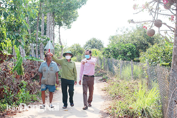 | Tuyến đường ở khu 2, ấp 6, xã Sông Nhạn (H.Cẩm Mỹ) được anh em ông Mai Tiến Dũng (bìa phải) hiến đất đã được bê-tông hóa |