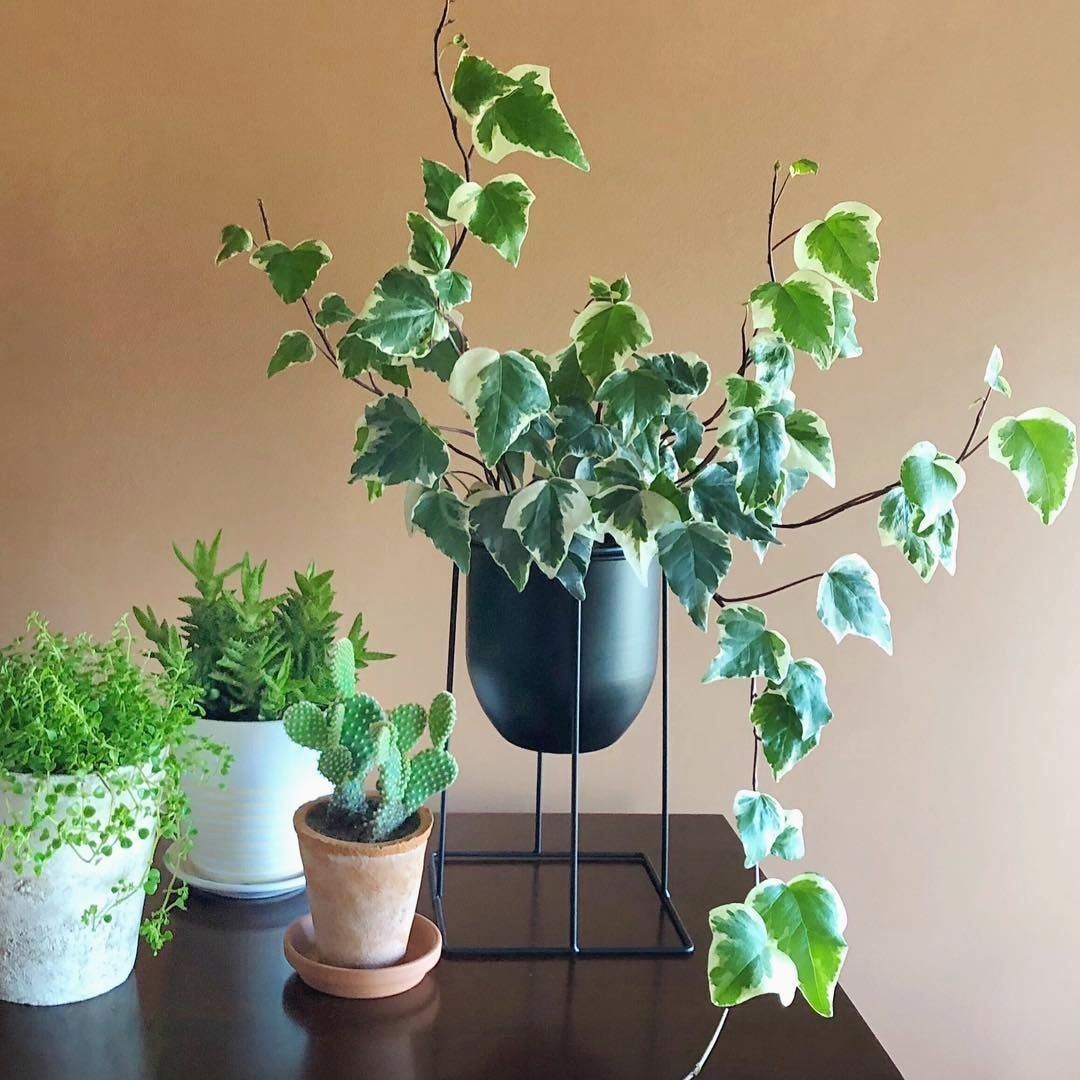 Đặt trên kệ hai loại cây thường xuân khác nhau tạo điểm nhấn cho không gian