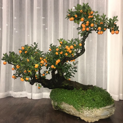 Chậu quất có thế cây hình chữ S tượng trưng cho đất nước Việt Nam