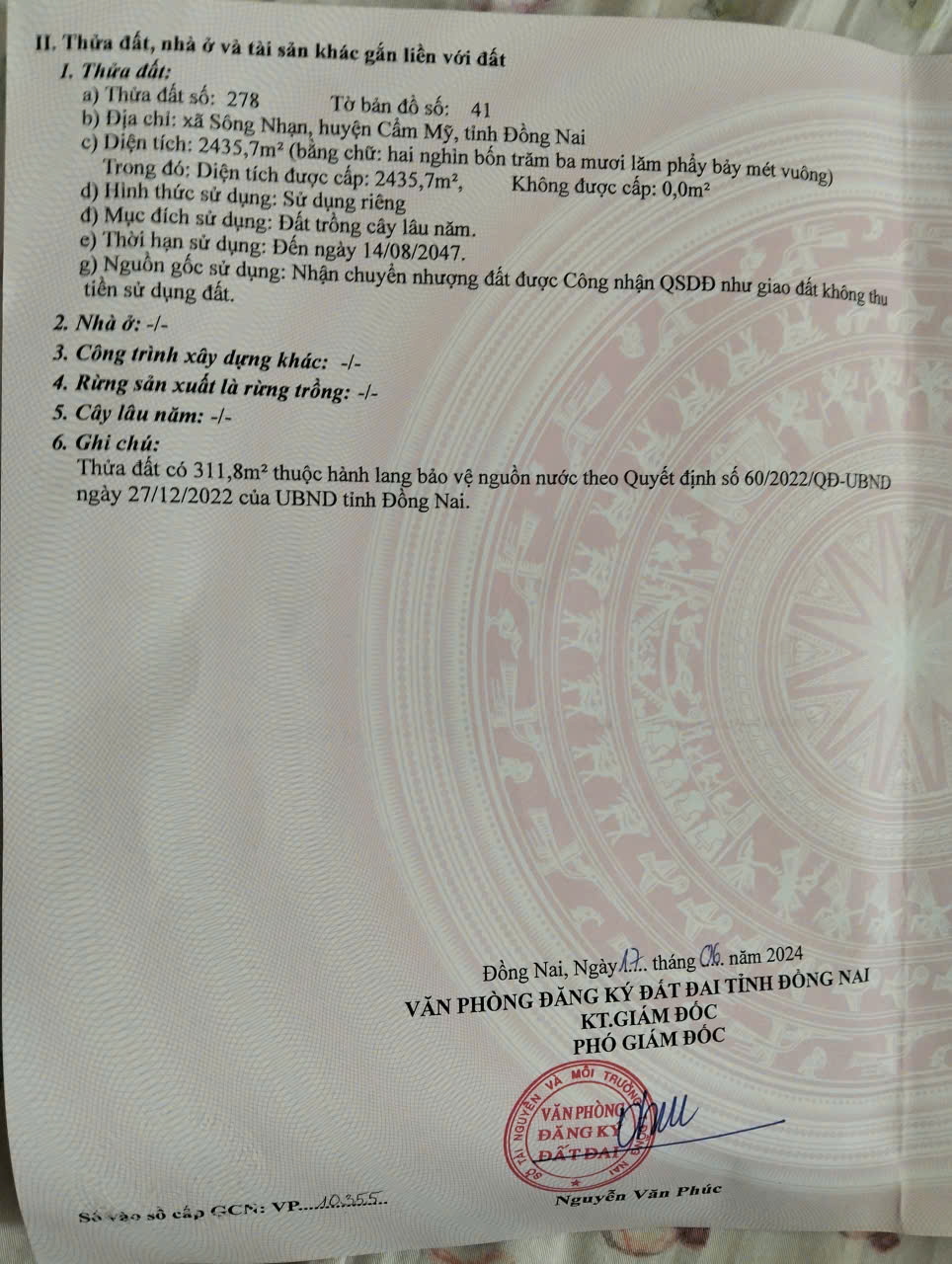* Chỉ có 6,5 tỷ cho nguyên sổ DT 2.436m2