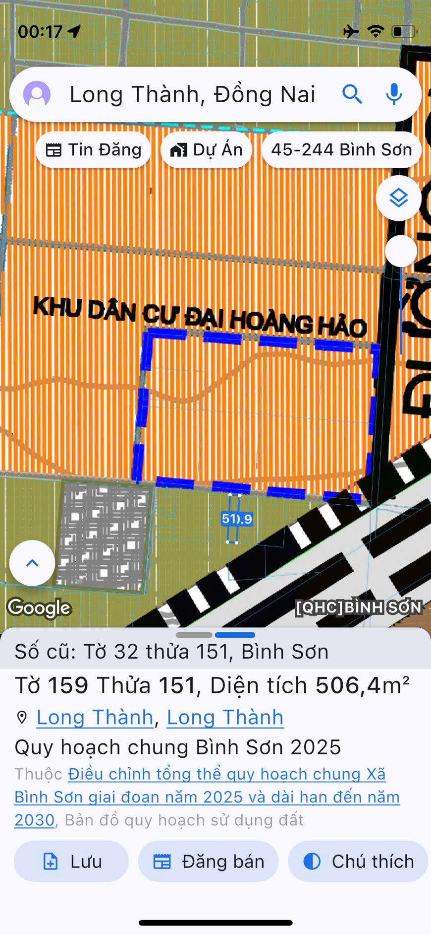 Chính chủ cần chuyển nhượng nhanh thửa đất đẹp tại xã Bình Sơn, huyện Long Thành, tỉnh Đồng Nai – vị trí đắc địa, chỉ cách cổng phía Bắc Sân bay Quốc tế Long Thành khoảng 1.5km.