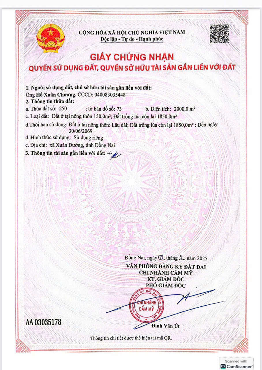 • Diện tích 2000m² đất vuông vức cực hiếm, đã có sẵn 150m² thổ cư.