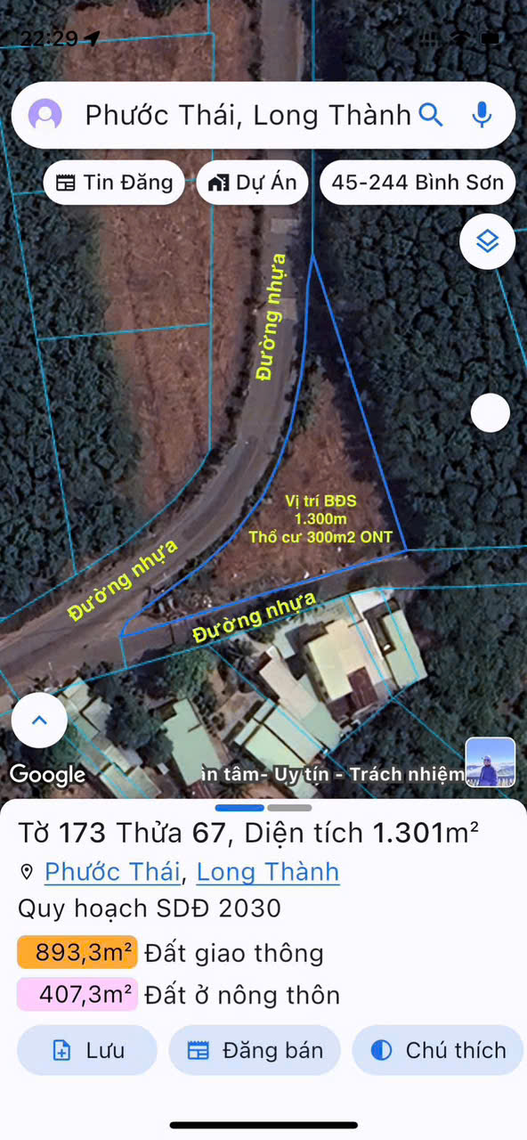BÁN GẤP ĐẤT THỔ CƯ, 2 MẶT TIỀN ĐƯỜNG (Nhựa) CHÍNH PHƯỚC BÌNH Giá cực sốc chỉ có 4 Tỷ.