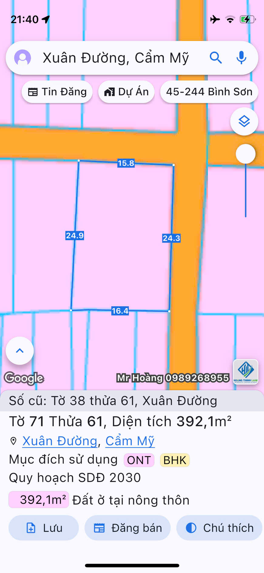Gọi ngay để giữ chỗ xem đất: 0989268955 (Mr Trần Hoàng)