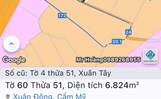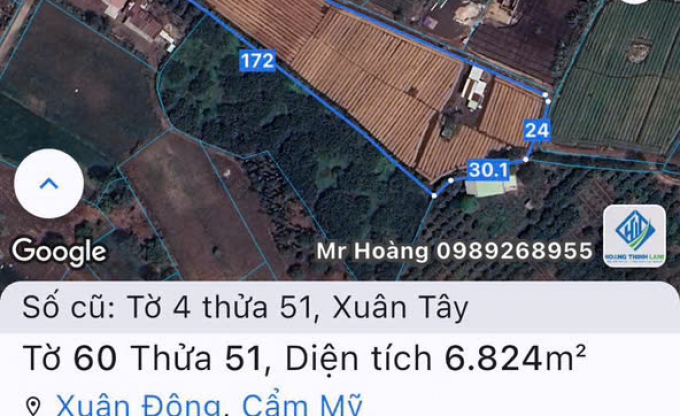 - Tổng diện tích: 6.824m², thế đất vuông vức – ba mặt tiền – cực kỳ thoáng, nằm ngay khu dân cư ổn định, điện nước đầy đủ.