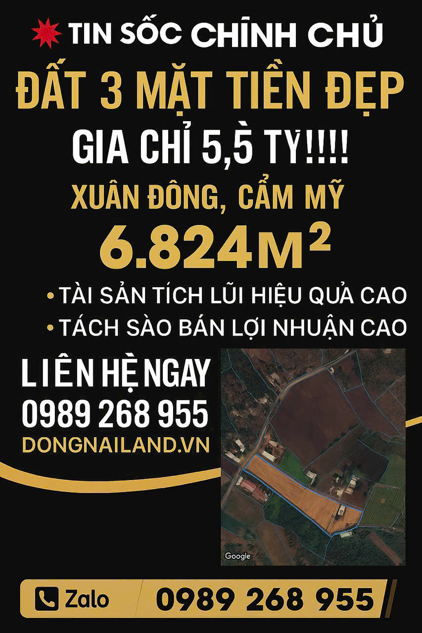 CHUYỂN NHƯỢNG GẤP – LÔ ĐẤT 3 MẶT TIỀN ĐẸP NHƯ TRONG MƠ 6.824m2 Giá 5,5 Tỷ
