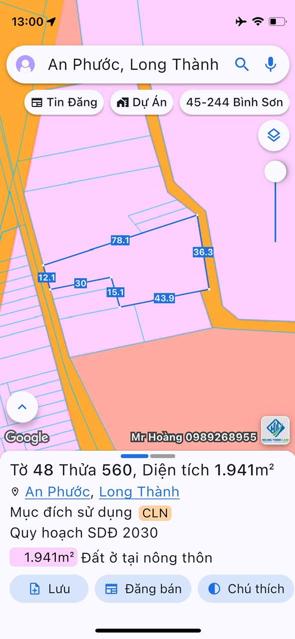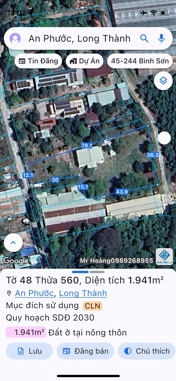Chính chủ cần bán nhanh thửa đất 1.941m² tại xã An Phước, thuộc tờ 48, thửa 560.