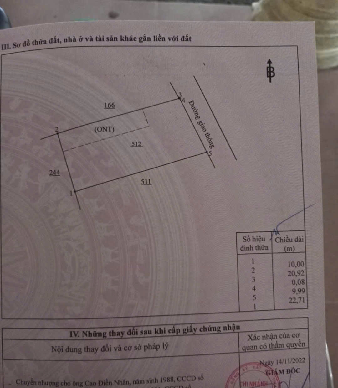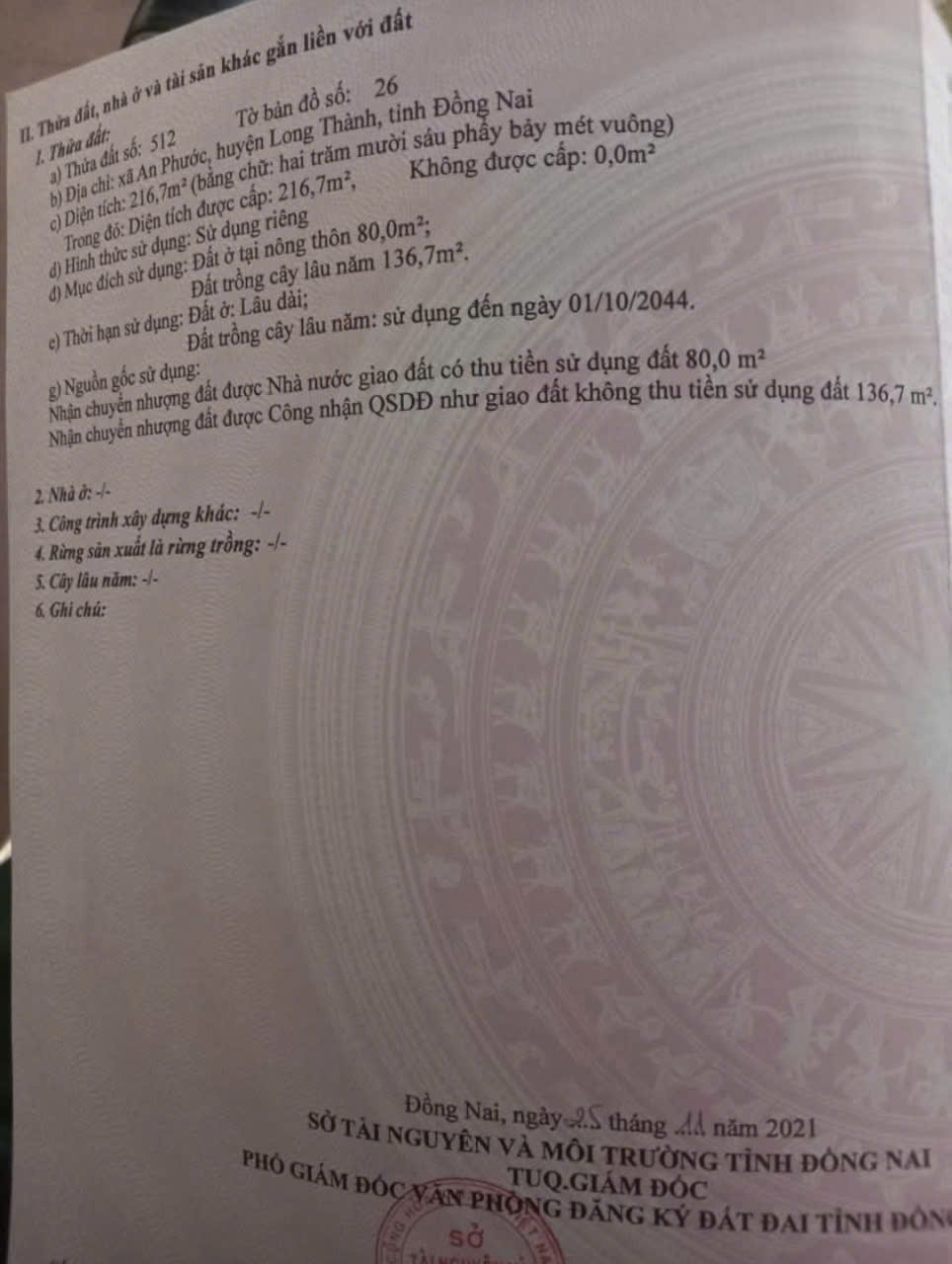 # Diện tích 216m² – thổ cư 80m² ONT