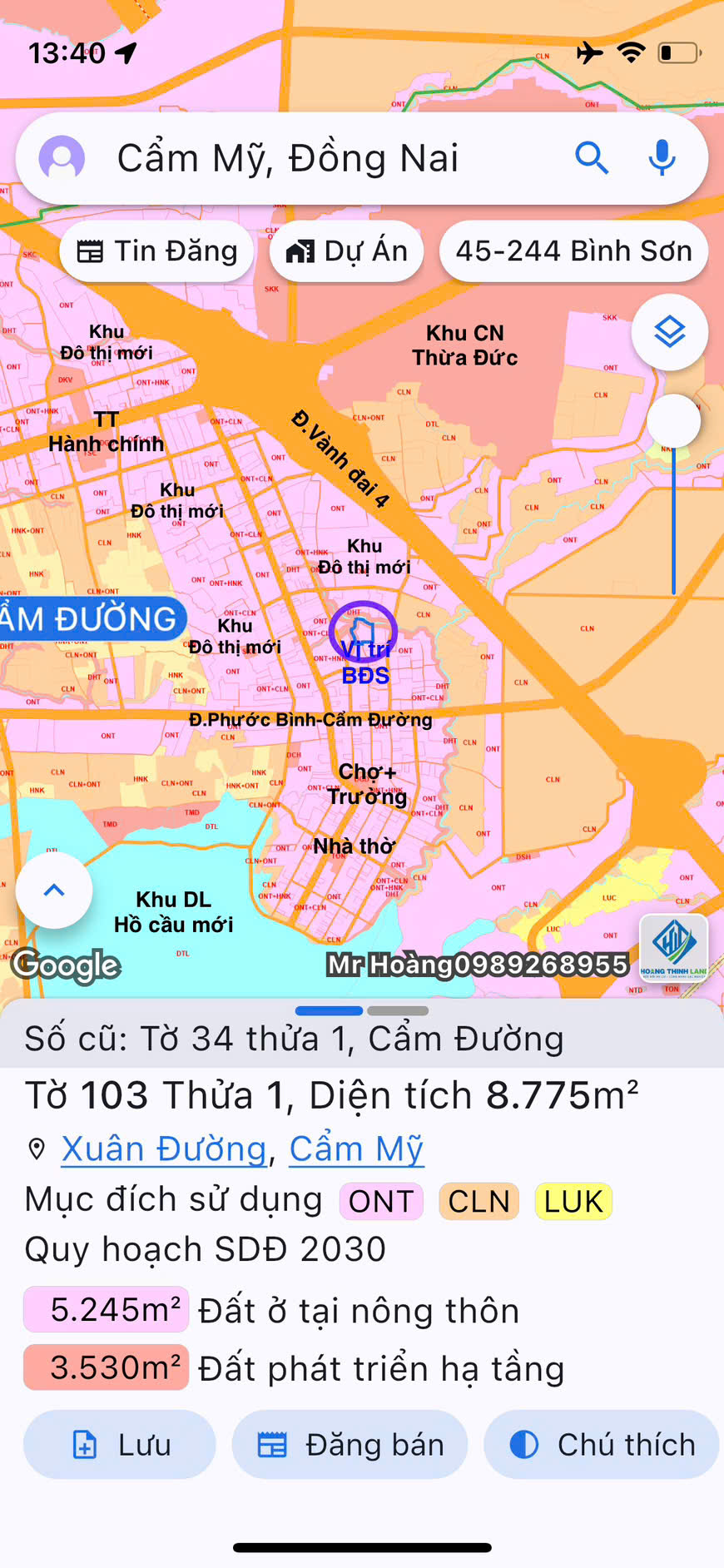 Nhận tư vấn đầu tư và nhận ký gửi Mua - Bán Bất Động Sản Khu vực Sân Bay Long Thành nói riêng và tỉnh Đồng Nai nói chung. Xin LH em Mr Trần Hoàng Zalo 0989268955