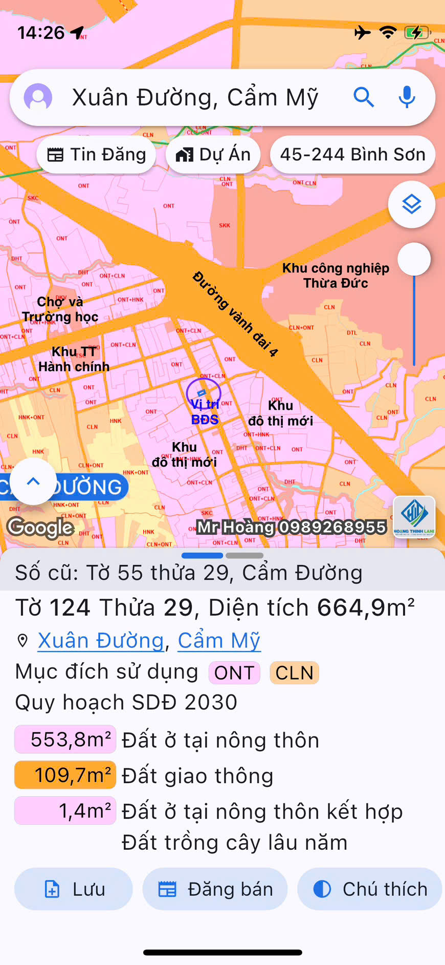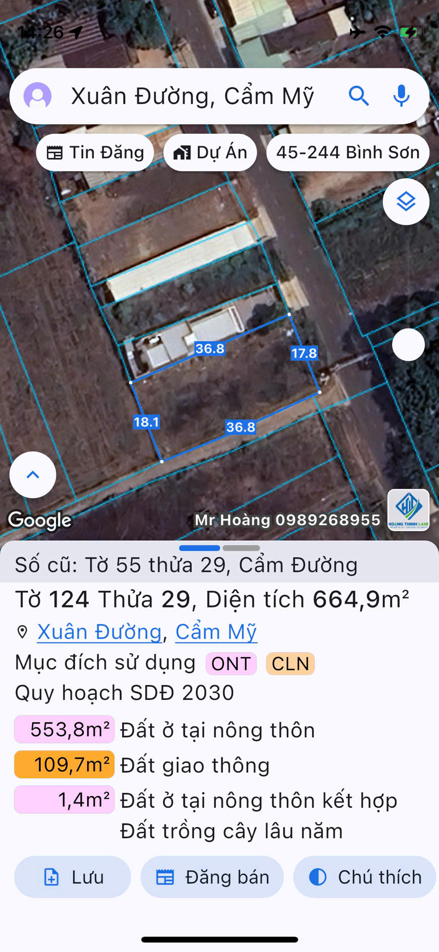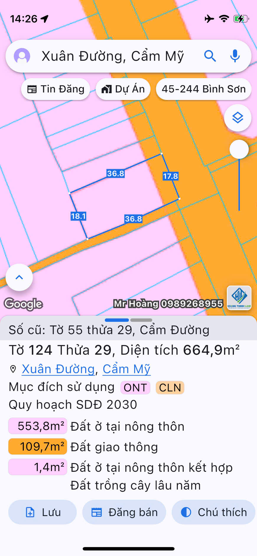 - Diện tích 664.9m², đã có quy hoạch rõ ràng theo SDĐ 2030